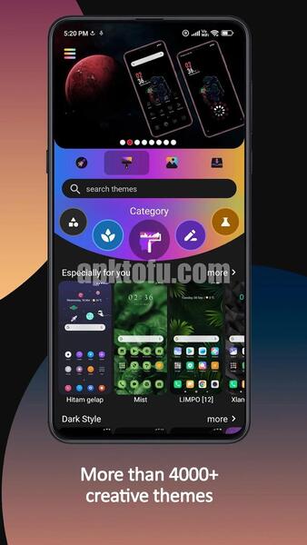 The program includes thousands of professionally-designed themes, changing all the system's UI. You can check out minimalist, anime, nature and tech-inspired designs, as well as free picks and Redmi Theme Store APK Premium packs with more visual elements and unique layouts.